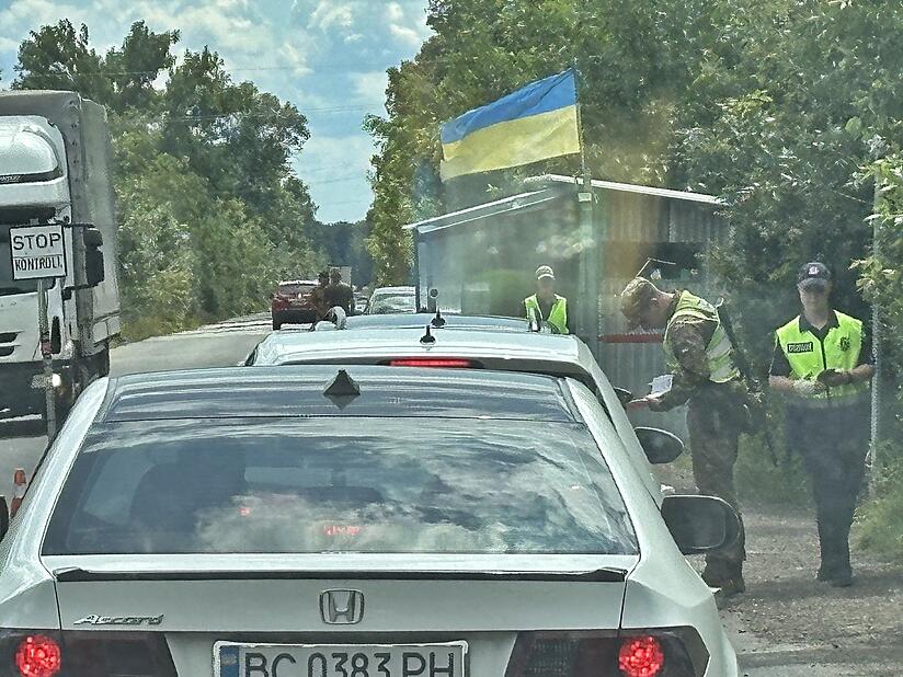 Bei der Fahrt entlang eines Grenzflusses zu Rumänien sind die Grenzkontrollen verstärkt. Jugendliche sind eingesetzt. Das Wort "Humanitata Caritas" hilft vorwärts zu kommen. Sind junge Leute in einem Pkw, die wehrpflichtig sind, werden diesen sofort "eingezogen". Der Grenzfluss selbst ist mit hohem Stacheldraht gesichert, um ein Durchschwimmen zu vereiteln.